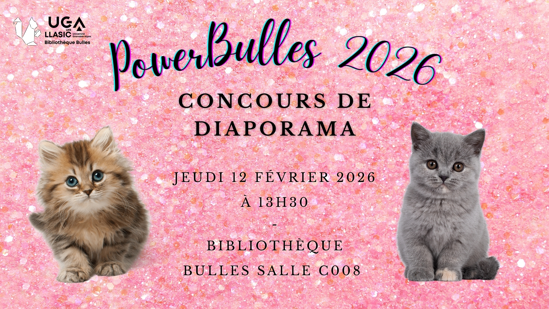 Envoie ton diaporama avant le lundi 9 février à 12h à bulles@univ-grenoble-alpes.fr. Le concours est ouvert à toutes et tous, mais attention, le nombre de participants sera limité !