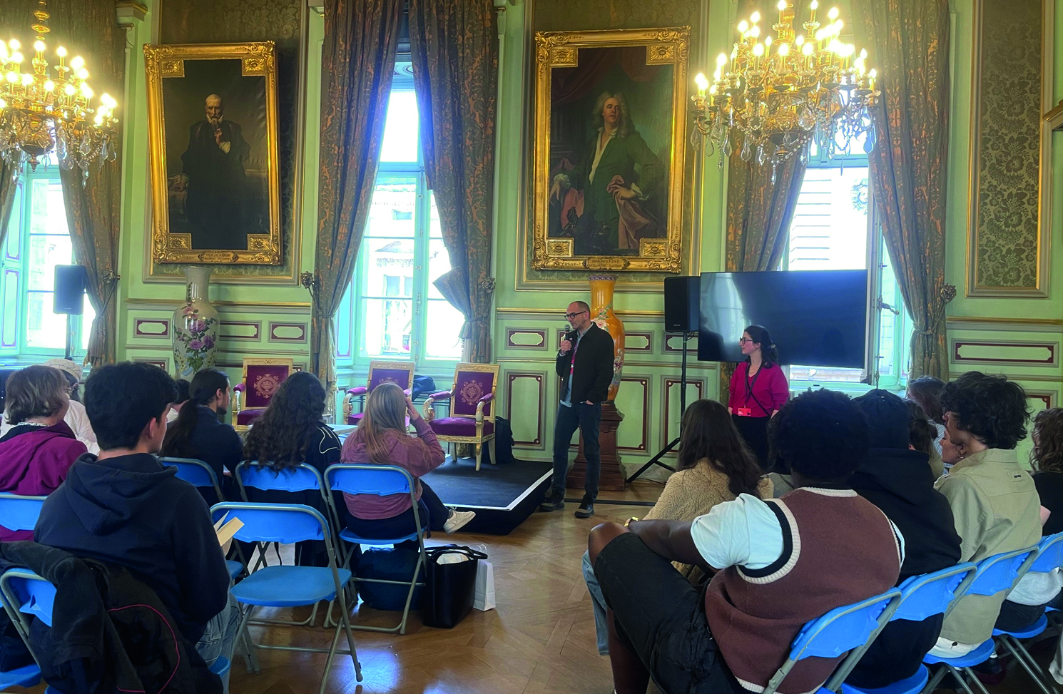 La rencontre, dans le salon de la Conservation de l’Hôtel de Ville de Lyon privatisé par Quais du Polar pour l’occasion, a été riche en échanges. Les étudiants ont interrogé les intervenants sur leur parcours, mais aussi sur leur quotidien ou encore à propos des enjeux contemporains du monde du livre, liés au numérique ou encore aux changements dans les pratiques de lecture.