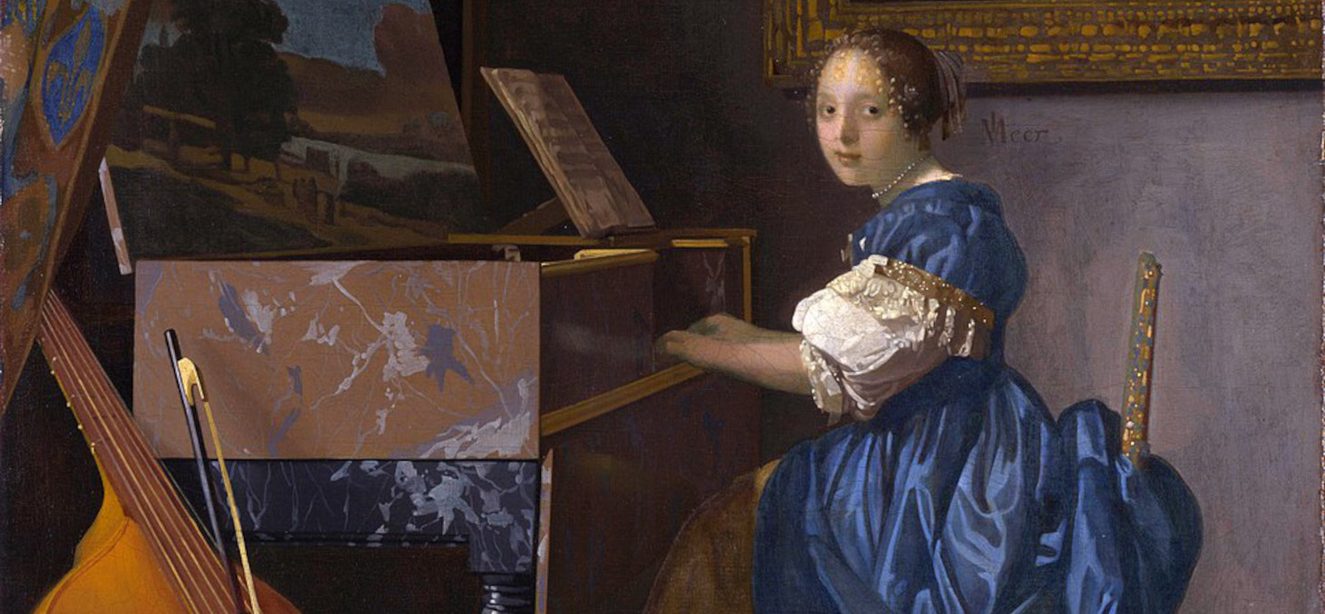 Johannes Vermeer, Jeune femme assise au virginal, vers 1671-1674. Huile sur toile. 51,5 x 45,5 cm. Wikipédia